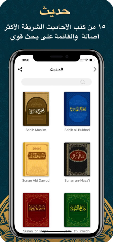 - التطبيق يضم باقة من الأحاديث الصحيحة مثل صحيح البخاري وصحيح مسلم وغيرها.